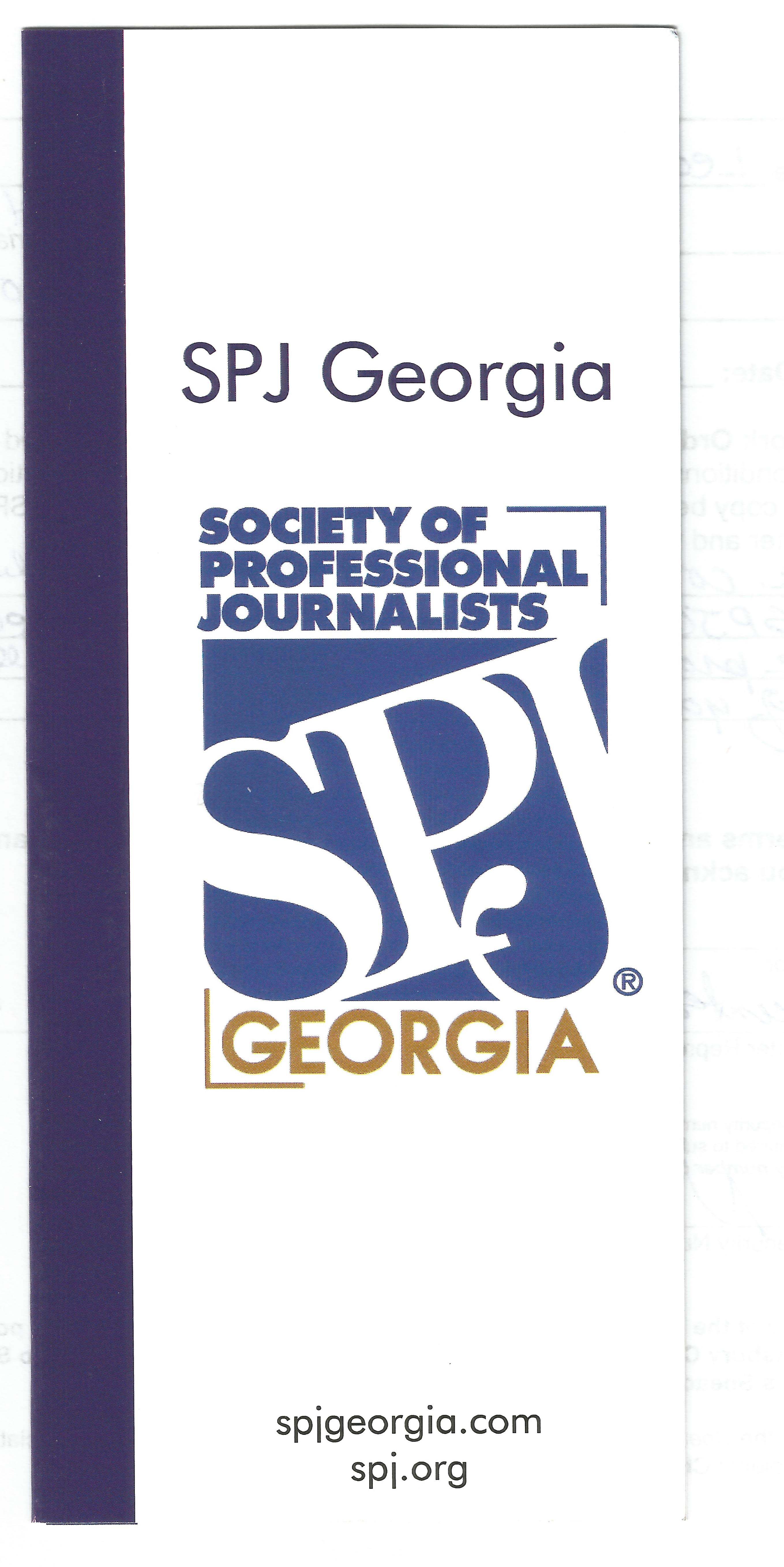 SPJ Georgia Professional Chapter has a new brochure. It is a prototype brochure to market the chapter and the Society of Professional Journalists. Together with our new logo, we want our members and potential members to have a piece of marketing in hand to clearly identify the Georgia chapter, and along with the SPJ National information, and have thorough information to become or support SPJ and SPJ Georgia. To request a copy of the brochure, email SPJGeorgia@gmail.com along with your name and address. To see inside of the brochure, link here.