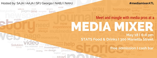 SPJ Georgia, along with the Asian American Journalists Association (AAJA), Southern Asian Journalists Association (SAJA), the National Association of Black Journalists (NABJ) and the National Association of Hispanic Journalists, is hosting MediaMixATL, May 18, 2015, at 7 p.m, 300 Marietta Street NW, Atlanta. This event is free, but registration is requested. Link here. Join us for this great media mixer for broadcasting, print, online and radio.