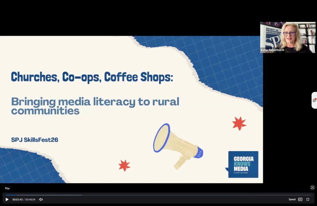 SPJ Georgia president Katja Ridderbusch and SPJ Georgia treasurer Susanna Capelouto gave a preview of our upcoming media literacy initiative, Georgia Knows Media, at SkillsFest26.